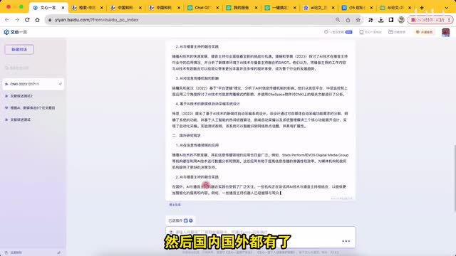 所以说这个问题呢,我们用的这个工具来说,就可以完美的解决了这个参考文献是假的的这个问题。然后接下来我们根据a i生成的这样一个论文,如何去提升它的这个总体的一个质量。因为现在我们如果写一个论文,很多学校都要求我们去写这样的一个国内外的研究现状或者论文综述。如果说我们把这一部分的这样一个质量能够提升,那么我们整个论文这样的一个结构和它的一个质量都会有一个飞跃。我们这里呢推荐大家去使用百度的这样的一个文心一言这样的一个网站。