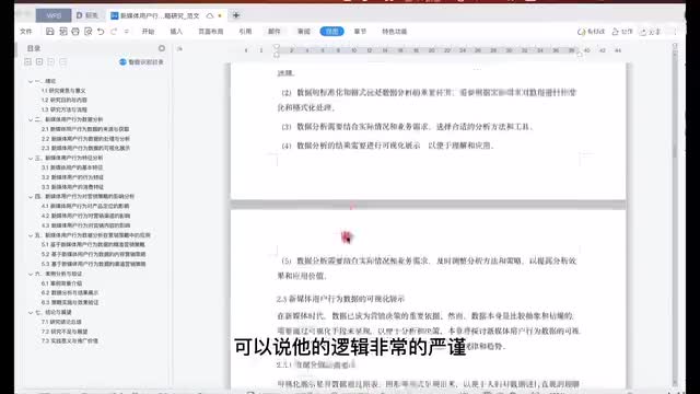 第六章通过一个实例分析与验证,这里面就包括了数据分析与结果展示。第七章就是关于整个论文的一个总结展望。我们看一下下面的一个具体内容,可以看到这里面用户行为的数据分析二点一。这里面就包括了数据分析的来源是哪里,是如何进行数据分析的,用了哪些方法,然后用到哪些数据工具。可以说它的逻辑非常的严谨,可以说确实要比我们自己的数据论文拼凑出来的这种。质量更高。可以看到这里面对后面的一些数据分析的维度、方法、策略都给了出来,以及它对数据分析的一些结果都进行了一些描述。我们后续可以基于它的这个整体框架,再把我们需要的一些数据进行一些修改,然后再加入一些图表。
