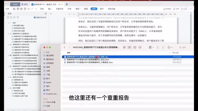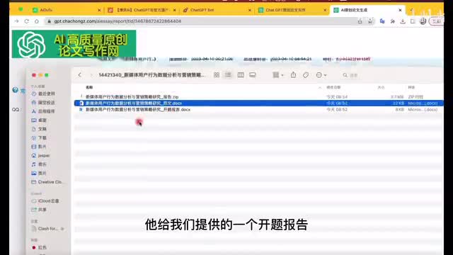 我们点击下载报告另存为。打开这个压缩报告之后,你可以看到这里面一共有三个文件。第一个是它的查重报告。第二个是它的范文,就是我们的这个生成的正文。第三个就是他给我们提供的一个开题报告。看来chat g p t给我们提供出来的内容还特别的全面。我们先打开这个范文,看一下它的主要内容。好,大家可以看到打开这个范文之后呢,它这里面左边是我的这个论文的一个整体框架,右边是这个论文的正文内容。
