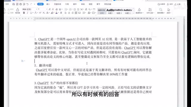比如当你在写论文遇到困难的时候,只需要向chat g p t去提问,它就能帮你找出论文的核心问题。甚至都能把论文的全部框架以及全文的主要内容很有逻辑的帮你去完成。第二个就是翻译问题,后面我们使用chat g p t的时候可能会用中文去对话,但它的底层呢还是基于英文翻译过来的。所以有时候有的回答看起来是有很多翻译痕迹的这都是很正常的。毕竟它已经帮你解决了百分之九十的工作量。第三个就是chat g p t的产生内容不要都信。因为他真的很会编,所以我们用chat g p t去学习是有一定风险的。不过用它去正经写论文的整体文字以及论文的框架结构这一些部分呢,它都是可以帮你去完成的。