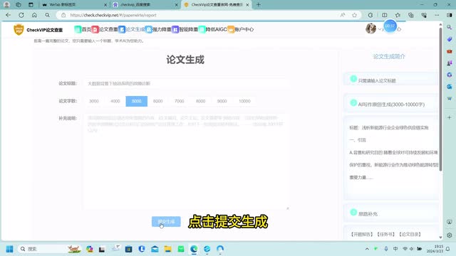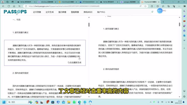 百分之四点九九的查重率顺利毕业了。我为大家找到了两款超级好用的ai论文生成网站,check v i p和pass g p s。不仅能够一键生成毕业论文,还支持对论文进行知网全文改写的功能。