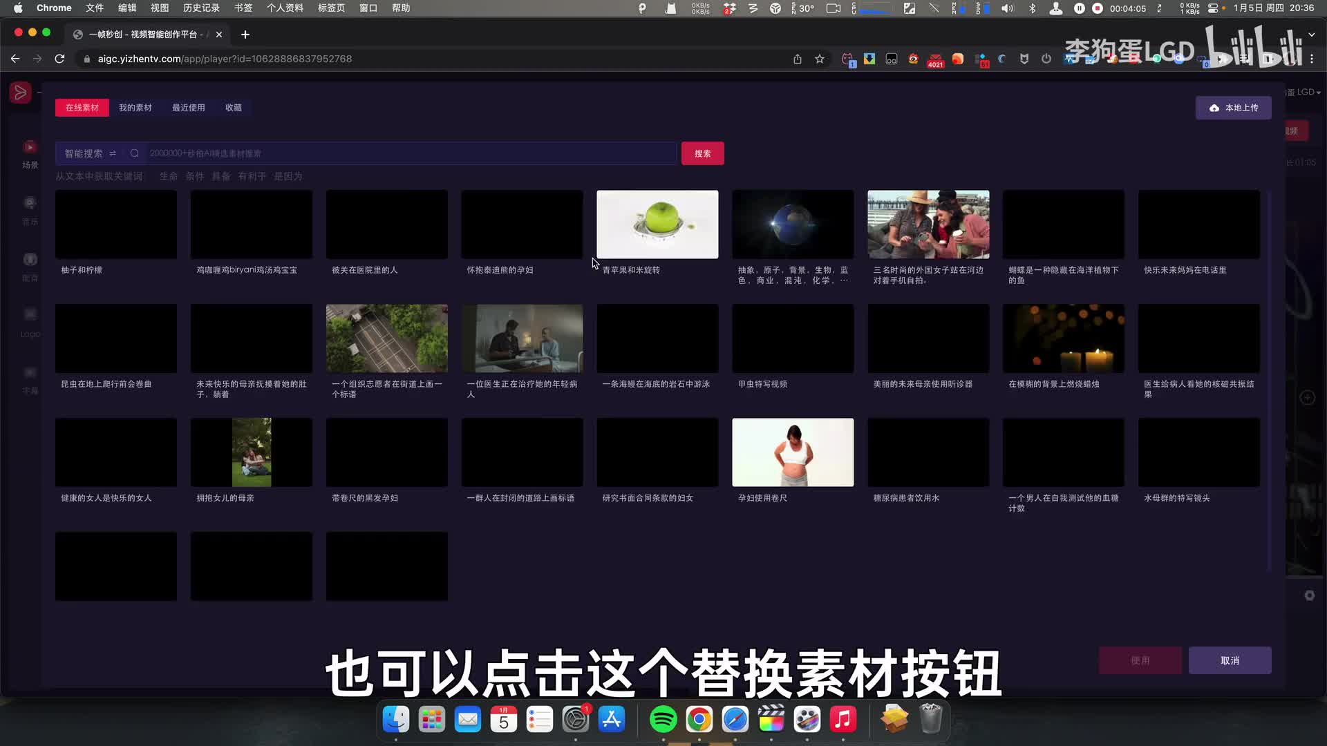 我们可以根据自己的喜好来选择不同的声音。如果你觉得素材不合适,也可以点击替换素材按钮,可以从素材库重新选选择或或者是点击本地上传上传你自己的素材。