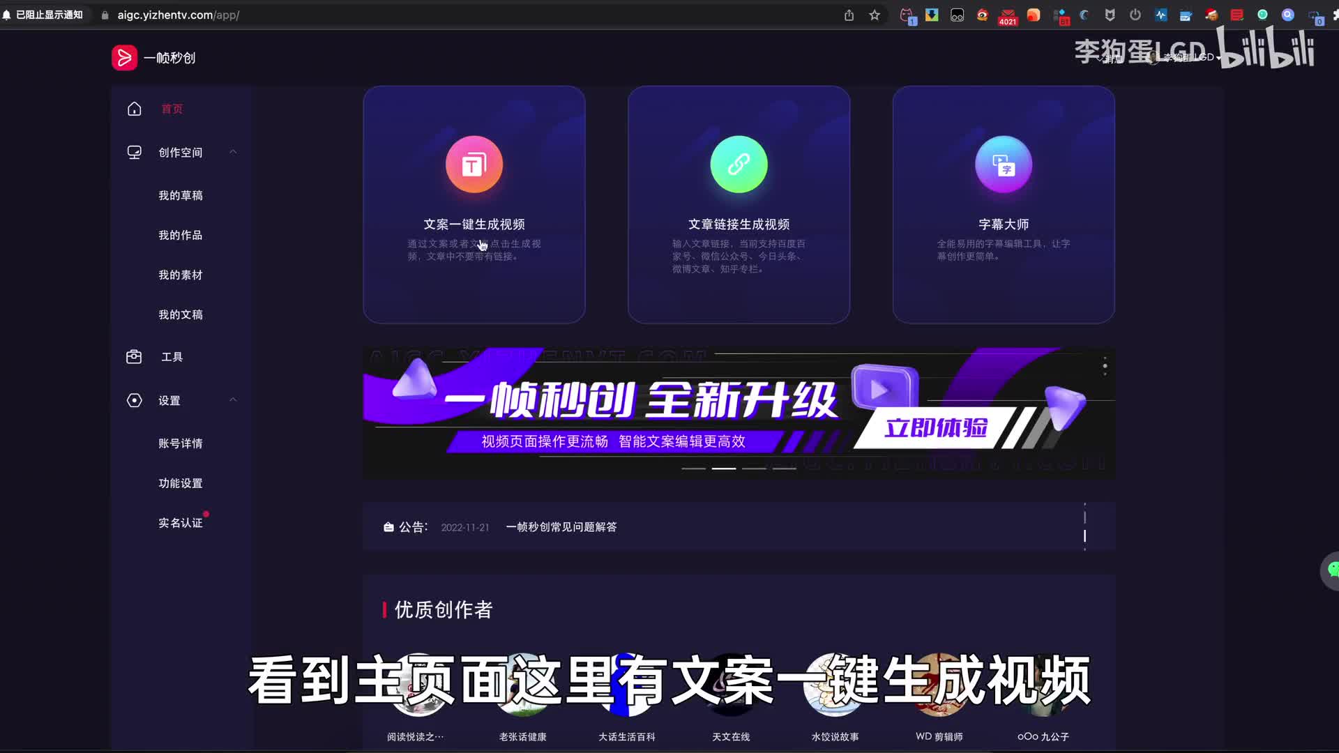 那么这和我们剪辑的视频有什么关系呢?这就要说到另外一款软件,一帧秒创。这款软件可以通过文字,然后经过a i自动生成视频。