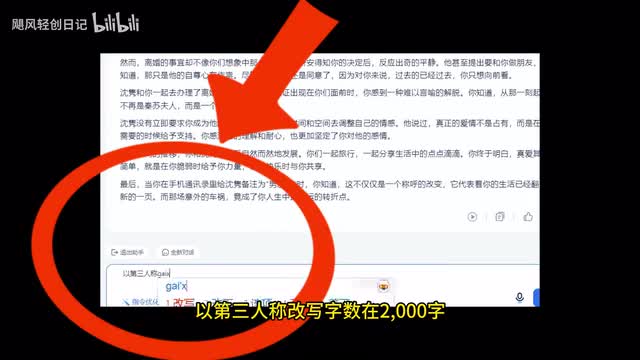 选择文章改写助手,粘贴要修改的小说内容,在文案下面加上以第一人称改写,字数在两千字,然后发送a i就会快速对原文进行修改。