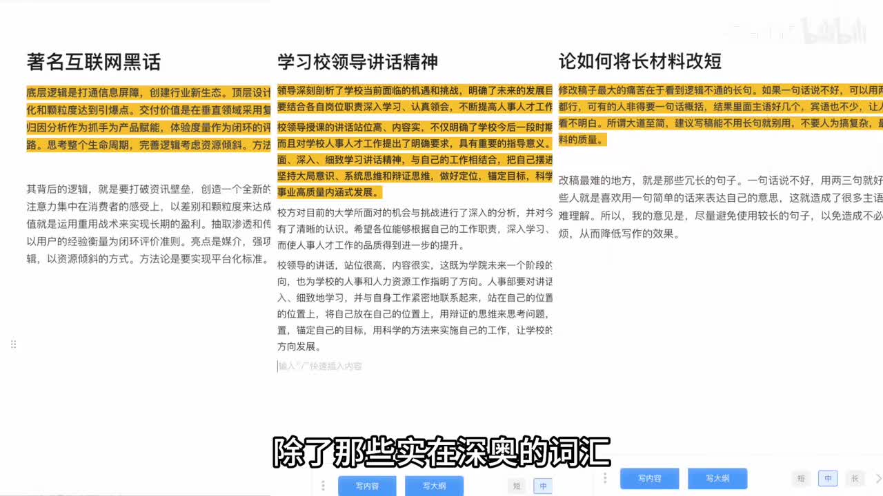 至于最后一个古文改写,我确实想不到是给谁用的啊,是给从古代穿越来的打工人用的吗?家人谁实习?臣不知其用。所以古文所出由善。而如果你现在论文顺利通过,成功找到工作,那你可能会经常和总结报告、通知邮件这类东西打交道。那除了这种我写你改,能不能我不写你写呢?也可以,毕竟它就叫写作,不叫修改吗?但我发现网络上提到用它写作的话题就少很多了。因为这个ai写作的功能之前在内测,最近才正式开放大模型,想用好这个功能还需要一些试错。