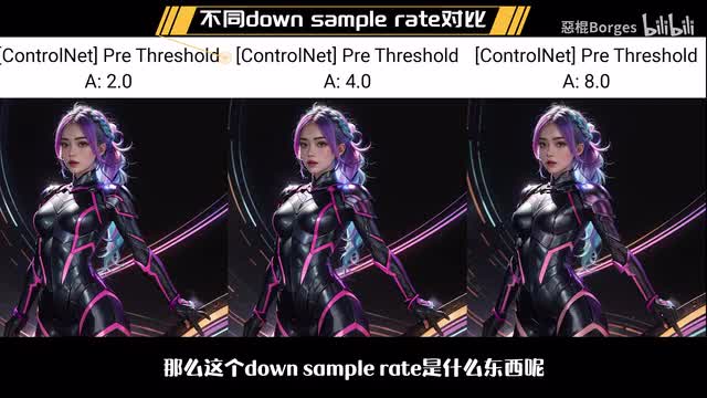 开启跳我们可以看到经历过till模型洗礼的图,身上的盔甲在细节上面就发生了肉眼可见的变化,由原来光滑的表皮变成现在比较有颗粒感的表皮。肩膀这里还变成了透明的材质,并且在不同的sample rate的作用下会有不同程度的细节变化。那么这个dal sample rate是什么东西呢?直译过来大概就是参考的的的的变化。假设你的参考图分辨率是七六八到sample rate为一的时候,预处理图分辨率就是七六八到sample rate为二的时候,那么预处理图的分辨率就是七六八的一半,也就是三八四到sample rate为八的时候,那么预处理图分辨率就是七六八的八分之一,也就是九十六。