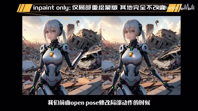 其实呢这三个我们都穿插着讲的差不多了,稍微总结一下。第一图片的omi颈局部重绘除了模板区域,其他的部分完全不改变。我们前面open pose修改局部动作的时候已经介绍过它的用法了。影片的omi加大模板缩放模式,选择缩放后填充空白,可用于扩展画幅。