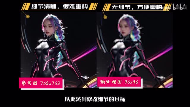 那降低预处理图的分辨率是为了什么呢?是为了让til有更多的发挥空间。降低分辨率可以消除参考图中的细节,重构新图像的细节,以此达到修改细节的目标。那么就有人要问了,你都把它的肩膀给变成透。明的了衣服能不能变成透明的呢?是的,确实是可以,理论上是可以的。