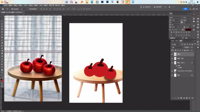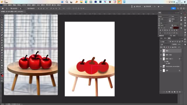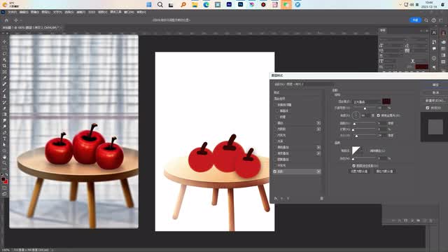 画一下苹果吧。窗口也实时更新了。背景噪点有点多。这是因为她有素质太高。把数字改小一点。寻找下载一张桌子图片。