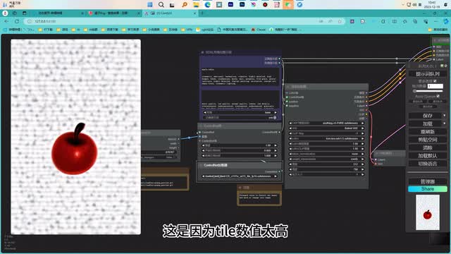 连接max lab图像高顶未必有节点。再次点击提示词队列。窗口顺利出现图像。在提示词窗口这里输入你想要的画面。我这里还是用苹果与桌子。画面没任何变化。