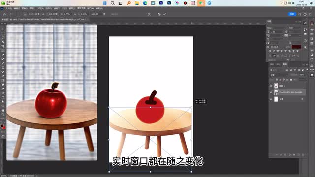 拖入p s图层。调整大小与位置。实时窗口都在随之变化。对物品复制。添加图层阴影。窗口也能实时显示。