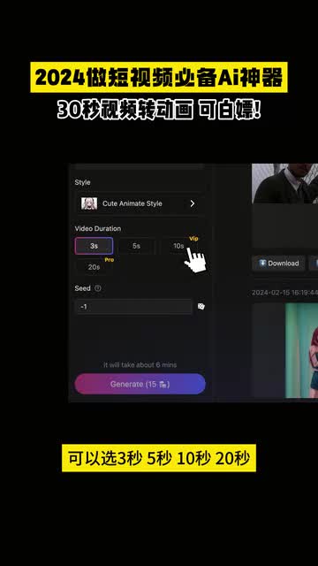 动画的时长可以选三秒、五秒、十秒、二十秒,最后直接点生成就可以了。