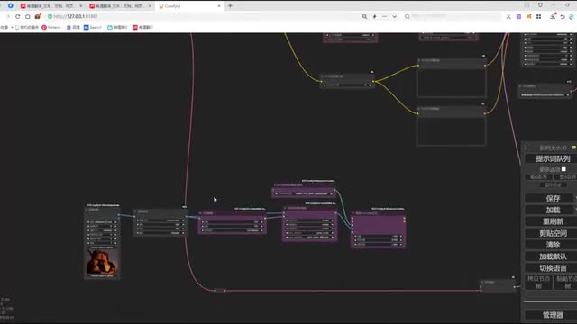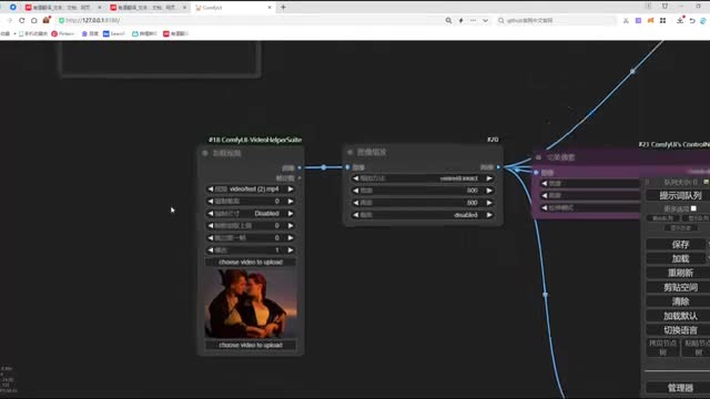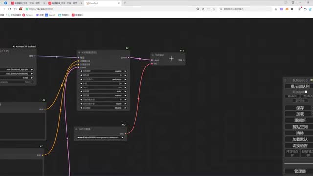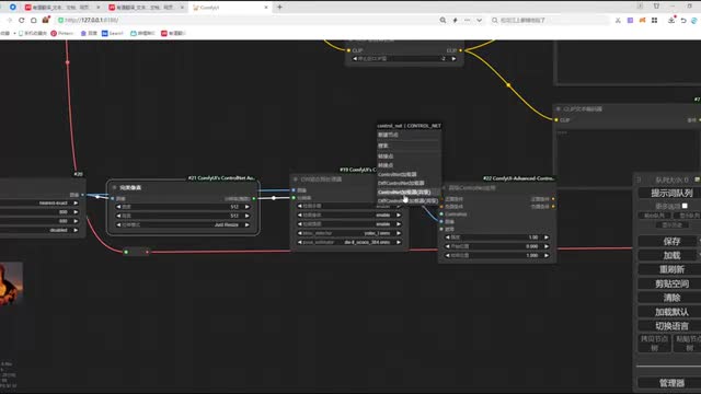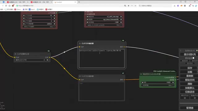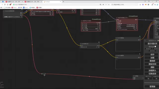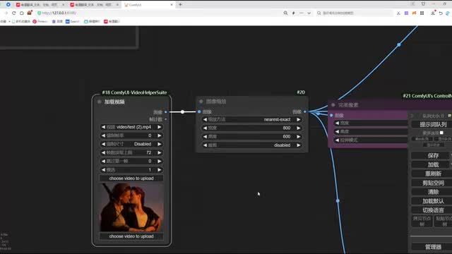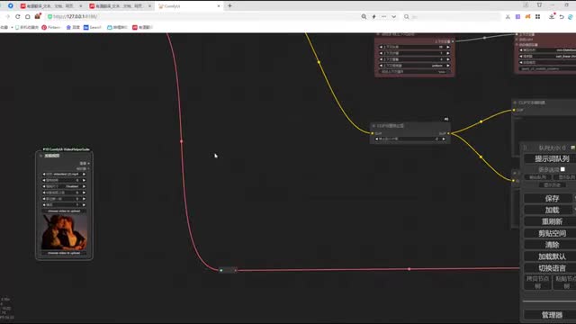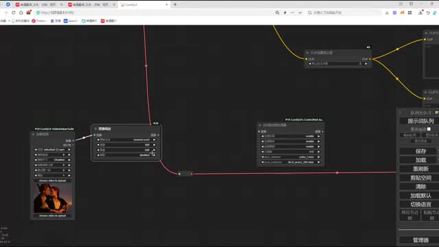 在连接它的反向提示时。将我们第一个connect和我们第二个connect的题词呢做一个连接。然后呢,再将我们第二个connect和我们的clip做一个连接。o k这样呢我们两个car net呢就和我们的整个n b def工作流呢完成了一个节点连接。我们调整一下工作流的布局,方便大家去观看啊。那这里呢还有一个v e的图像没有连接,我们把这个图像呢和我们加载的视频的图像做一个连接。ok. 那我们再来看一下还有哪些节点没有连接,来检查一下,这里呢就是我们enemy dive的一个节点加载。
