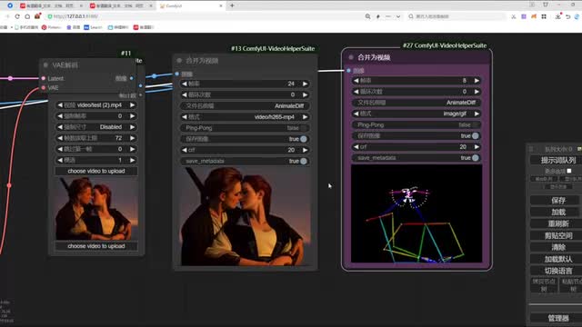 第一个呢是open pose模型。第二个呢是拆分的模型。同时呢也做了一个串联。那这里需要大家注意一下啊,在我们视频这里呢有一个增速读取上限。如果说你的。显卡配置较低的话,那可以设置一个每次。一秒或者是两秒的一个输出。