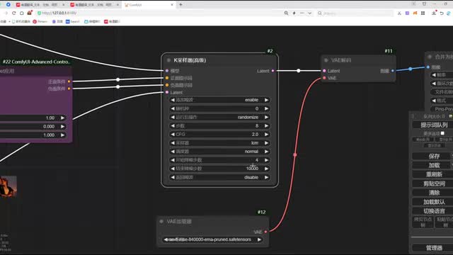 我们加载一个v e解码。然后呢,给v e一个加载器。选择八四零零零。最后图像这里呢。我们找到节点。找到视频。找到一个合并为视频。