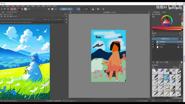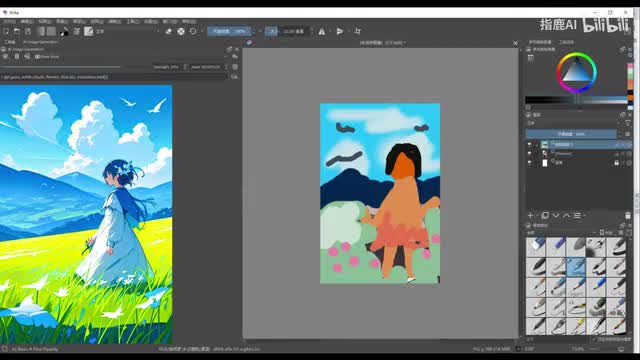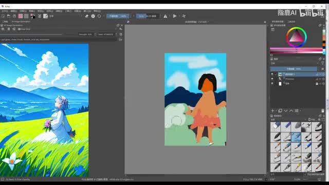 ok我们大笔画起来啊啊大片的蓝天啊,朵朵美丽的白云,一片巍峨的山脉啊,美美的小女孩,碧绿的草地。ok先这样啊,我们点击左边这个播放按钮,先看一下效果,哎,好像没有太大的变化啊,貌似翻车了啊,那翻车是绝对不可能的,大家注意看啊,我们调整这里的这个重绘幅度参数啊啊,看到我调整就可以看到这个画面也在跟着数值变化了。ok我们调到八十啊,差不多啊,这个效果就还可以点击随机种子的,点击这里的种子还可以切换画面的表现。