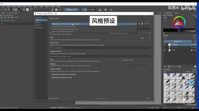 点击右上角的齿轮,进入到插件的设置页面。styles process风格预设。上面是几种自带的风格预设啊,它包括电影、照片、新样式、数码艺术作品等啊,这里呢可以选择这个check point的大模型,下面这个a d d l你点一下就可以选择这个lower模型,还可以设置模型强度。