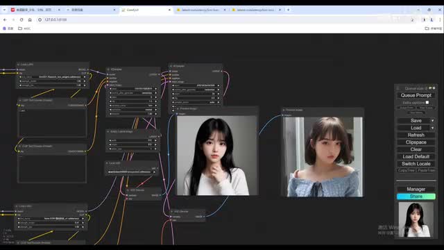 啊,效果也不错啊,脸呢也没有崩坏。我们把这个工作流呢啊cn加c复制一份出来。把nova的换成一个常规的这个微调模型。其他的呢保持不变。