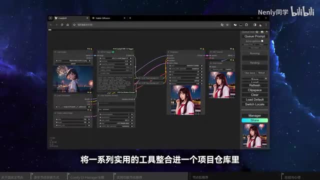 但无论是去运用一个工作流,还是自己设计一个工作流,最基本的单位就是这样的一个个节点。所以装节点是我们必修的第二课。同时从这些推荐节点的功能和。用方式里,我相信你一定看到了conf u i的一些特点和魅力所在。它是一个大舞台,每一位开发者都可以借助它实现一些自己想实现的东西,从而造就了目前coffee i节点生态的百花齐放,也才支撑起所谓工作流时代的无限可能。作为用户,我非常感激这些富有创新、怀抱热情的节点开发者们。如果大家得到了这些节点的帮助,也不要忘了在项目的页面点上一个star,它它就相当于github上的一键三连,我猜也会是大佬们制作下一个节点最大的助力。以上就是本期视频的全部内容了,下一期我们会在各种使用节点功能的基础上,拆解分析包括放大、重绘、laura controller等在内的各种典型应用工作流,从而帮助你灵活的驾驭它们,百分之百释放conf u i的潜力。如果讲解的内容对你有所帮助,请别忘了也给这个视频一键三连。这里是南磊,感谢你看到最后,我们下期见喽,拜拜。