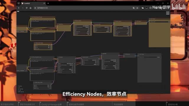 保守估计目前市面上有一半以上的conf u i工作流,应该都会用到它们中的节点。因为篇幅原因,我们今天没法确切的一个个去说明它到底该怎么做。但如果你对它们感兴趣,就和以往一样,在屏幕上敲个一来,预定一些更为深入的教程吧。通过这个pack的例子你也可以看到有许多节点是致力于辅助我们的生成和工作流搭建过程,以此来提高工作效率的。既然谈到了效率,就不得不介绍另一个大名鼎鼎的节点包efficiently nose效率节点。用一句话来概括这个节点的作用,它里面的各项功能就是致力于为copy y用户提供更加高效且更加贴近于iii u i的使用体验而设计的。这个efficient到底体现在哪里呢?它它的两个核心组件就是对efficient loader和efficient k sampler。k k sampler看上去好像和原版差不多,但你会注意到它的种子按钮被做成了和vivo i i类似的样式。点击左半边和右半边就可以控制随机或者是复用上一次的种子。它在右侧也提供了一系列。