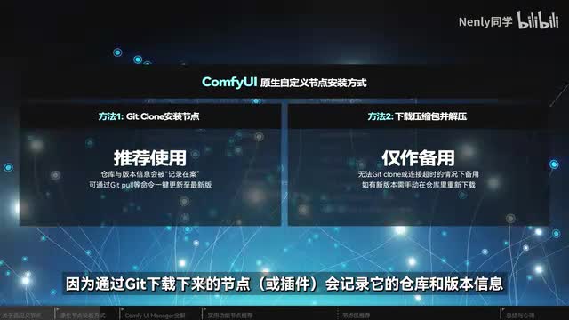第二种方式则是在仓库页面里通过选项直接将代码文件打成压缩包下。下来,然后再解压到这个文件夹里。两种方法安装完新节点以后,再通过run重启comp u i和v b u i的插件一样,启动的过程中可能会根据节点需要安装一些依赖文件。安装完成进入界面,你就可以在右键菜单里看到那些新节点了。我建议优先使用第一种方法进行安装,因为通过git下载下来的节点会记录它的仓库和版本信息。在日后可以通过git flue的命令动态更新,但下载压缩包的形式制作的节点是离线的。如果有新版本需要手动再去下载,推荐只作为第一种方式行不同时的备选方案了。另外在使用前的安装过程中,因为网络的原因,可能会用到一些连接超时的问题。我也在简介里的资料文档中附上了解决方式,记得一定要去阅读。对于程序员朋友们来说,这个过程再简单不过了。