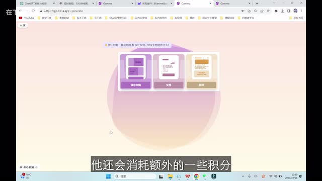 大家需要注意,每一个账号呢官方是给了四百积分。每做一个p p t就要消耗四十个积分。如果你需要a i机器人服务的话,它还会消耗额外的一些积分。我这里呢有一个帮助大家无限次获取使用次数的方法,感兴趣的小伙伴呢可以给我点赞评论,在后台私信我哟。