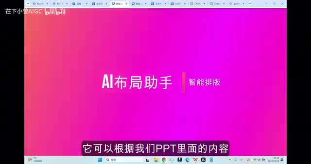 但是总体来讲呢,模板的设计不是特别的精美,还是简单了一点。这个地方呢cover就有一个。非常智能的点了ai布局助手。它可以根据我们p p t里面的内容,实时的去匹配相应的排版样式。举个例子,我们来测试一下,我在封面这个地方去添加两张图片。
