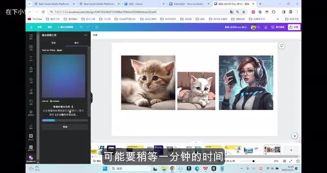 这个地方呢它还有一个跟runway联动的纹身视频的这样一个功能。我们也可以来看一下哈,同样的输入一个猫猫趴在沙发上玩线吧,我们来看一下它的这个效果,可能要稍等一分钟的时间。哇哦我觉得这个效果真的太棒了。整个的这个视频的质量真的超级逼真,而且效果也非常不错。那大家下来呢可以自己去玩一玩。