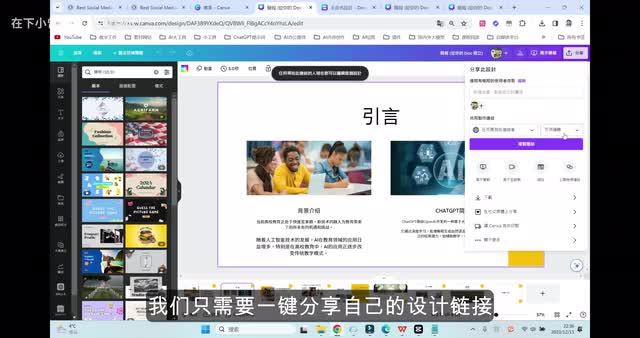 那整个p p t完成之后呢,我们可以点击右上角这里的分享。当然如果你是企业团队合作或者是学生的小组作业的话,我要向各位隆重推荐这个功能,多人在线合作。我们只需要一键分享自己的设计链接,那就可以实现多人同时在线编辑的这样一个功能了。这个地方支持多种文件格式的导出,图片、视频、p d. f等等格式都是支持的。我们这个地方选择p p t x格式啊,点击下载稍等一分钟的时间。
