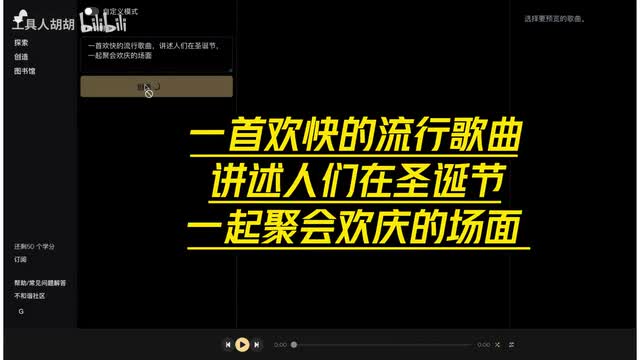 你知道现在普通人做音乐有多简单吗?打开苏诺,只需用简单的文字描述你想要创作的内容,就能立马获得对应歌曲。比如我输入一首欢快的流行歌曲,讲述人们在圣诞节一起聚会欢庆的场面,短短几秒,ai就能按照我的指令完成生成,大家听听,效果好。