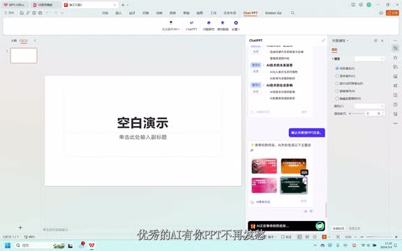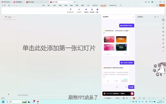 现在我们来生成一份人工智能发展历程的p p t,看看a i制作的p p t怎么样。a i正在设计p p t主题风格,好期待啊。