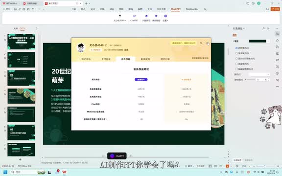 我想告诉大家这个拆p p t优惠原则,但对大学生来说可以免费使用。看普通会员每天可以生成二十页p p t,十张图片,对大多数工作者和学生来说基本够用了,推荐大家使用。
