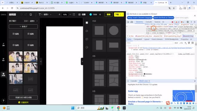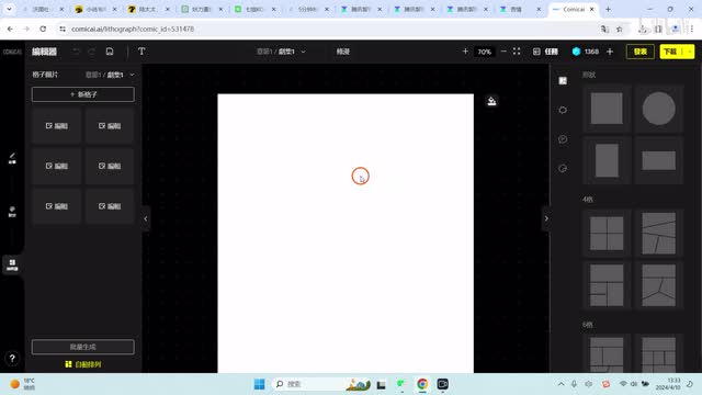 在这里呢,我们就可以看到一键生成漫画。我们要创建新格子,它才能生成。比如说我们创建六个新格式,演示一下。好,我们看到在生产中。后面他也是在排队中,刚才应该是没反应过来。好,我们现在呢生我们用生产中生产好的这个图片,然后来进行下载。下载图片怎么下载?我们点击右键。