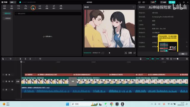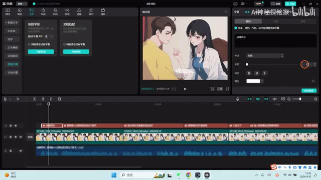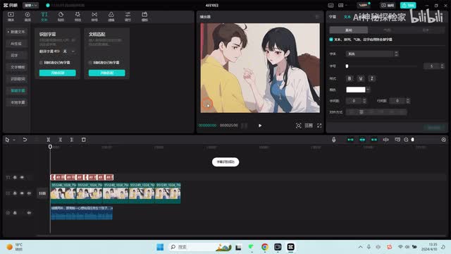 倒进来然后再把音频拉下来。现在我们进行字幕的识别。进行字幕开始识别。有字幕了我们就开始,现在我们需要把字幕锁定,要不然等于拉动图片的时候,字幕也会随动,随自动锁定轨道。我们可以。每个图片相对于每个文字。演打个演示,这样拖动拖动到每个文字下。