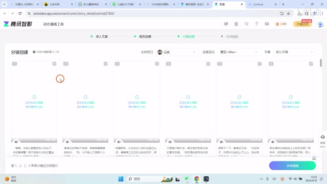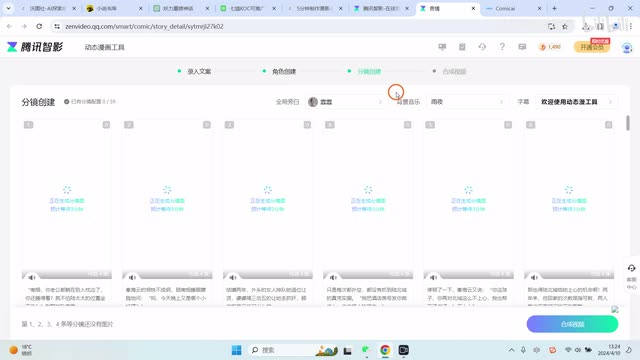 好了,我们看到这些,现在角色创建已经全部完成了。我们可以看到有这些角色,如果大家对角色不满意的话,大家也可以去修改。好,我们点击已确认。现在呢我们就会对进行那个分镜图来创建。分镜图比较多,所以大概时间会相对来说长一点。在这个分镜图创建之后呢,我们可以选择旁白,也可以选择配音的。比如说选择任意选择配音。