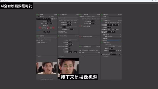 我这里选择关闭这个摄像机语言。第三个窗口呢是人脸检测器,选择我们的显卡类型,人脸标识器选择我们的显卡,还有人脸融合器,这里也选择我们的显卡。这里还有重要的一点呢是人脸交换器。人脸交换器主要用于选择我们需要替换的模型。
