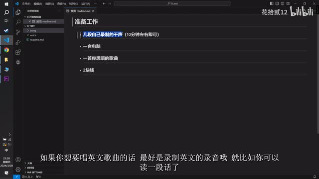 然后是一台电脑,一首你想唱的歌曲,最后你还需要两块钱。两块钱可能都用不到。首先我们说一下这个录制的干声呢,如果你想要唱英文歌曲的话,最好是录制英文的录音啊,就比如你可以读一段话了。one star for或者你也可以去唱一首歌都可以。但。