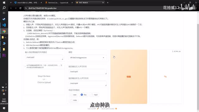 然后我们这里可以选择三和四。选择去混响的这个选项。点击转换。同样的,转换完成之后,这里会输出日志。大家也可以根据作者推荐或者自己尝试一些新的顺序吧。
