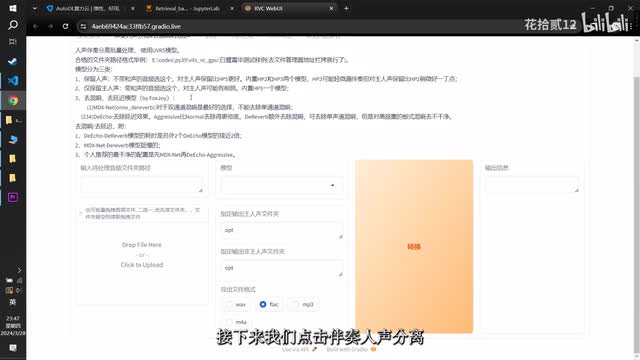 主文件夹这里会有两个文件夹,一个是伴奏,另外一个是人声。我们把这个伴奏下载下来。保存一下。然后我们回到刚刚的这个伴奏人声分离的界面。将这个待处理的音频换成o p t r,也就是我们人生的文件夹。