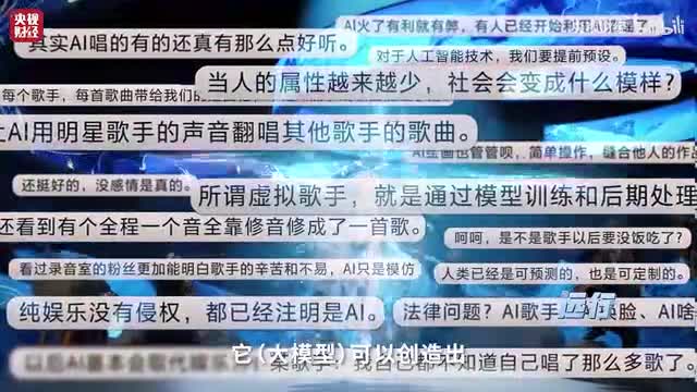 二零二三年的乐坛,因为一场铺天盖地的翻唱,意外成为科技界的焦点。因为翻唱的主角来自数字世界,从玥语到英语,从流行到民谣,自由切换的曲风和每天数十首作品的上新速度,让a i歌手们迅速霸占了社交网络的热搜榜首。它可以创造出啊或者生成许多许多新的这些内容啊,包括语言的图像的这个声音,这里面呢就生成特别逼真的虚假信息。使用知名歌手的声音素材,经过大模型的训练和调教,以假乱真的赛博歌手就这样成为人工智能的时代产物。