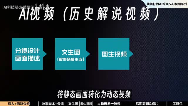 学会这几个工具和小技巧,轻松制作出这样高级感满满的历史解说视频。在前两期的视频里,我们已经学会了ai视频的技术流程,以及如何制作丝滑的人物动作。本期视频将带你了解如何运用ai工具,从分镜设计到最终成片,每一步都精心设计,确保内容深度与画面美感并重。