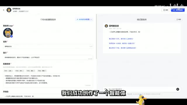比如这里雷阿填的是一位数码领域的高手,什么最新最全的科技资讯他都清楚,并且也能给出各类三c产品的选购建议。填写好了,我们成功创建了一个智能体,接下来我们就可以测试。一下比如我问他苹果十五系列如何呢?很快他就给出了一长串的回答,内容观点准确得当,清晰自然,并且逻辑也自洽,确实表现很不错呢。