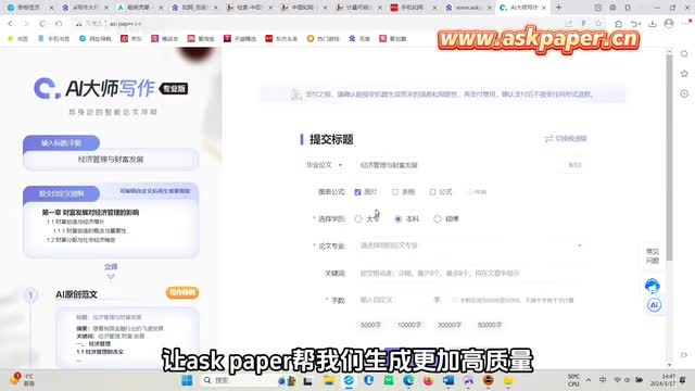 在成文之前可以看到有很多不同的选项,像专科论文、本科论文、硕博论文,包括输入论文关键词,都可以按需来,让ask paper帮我们生成更加高质量、更贴合我们需求的内容。这里仅是一定不要错过a sk paper的a i g c降重功能,能够直接帮你进一步降低文章a i率。