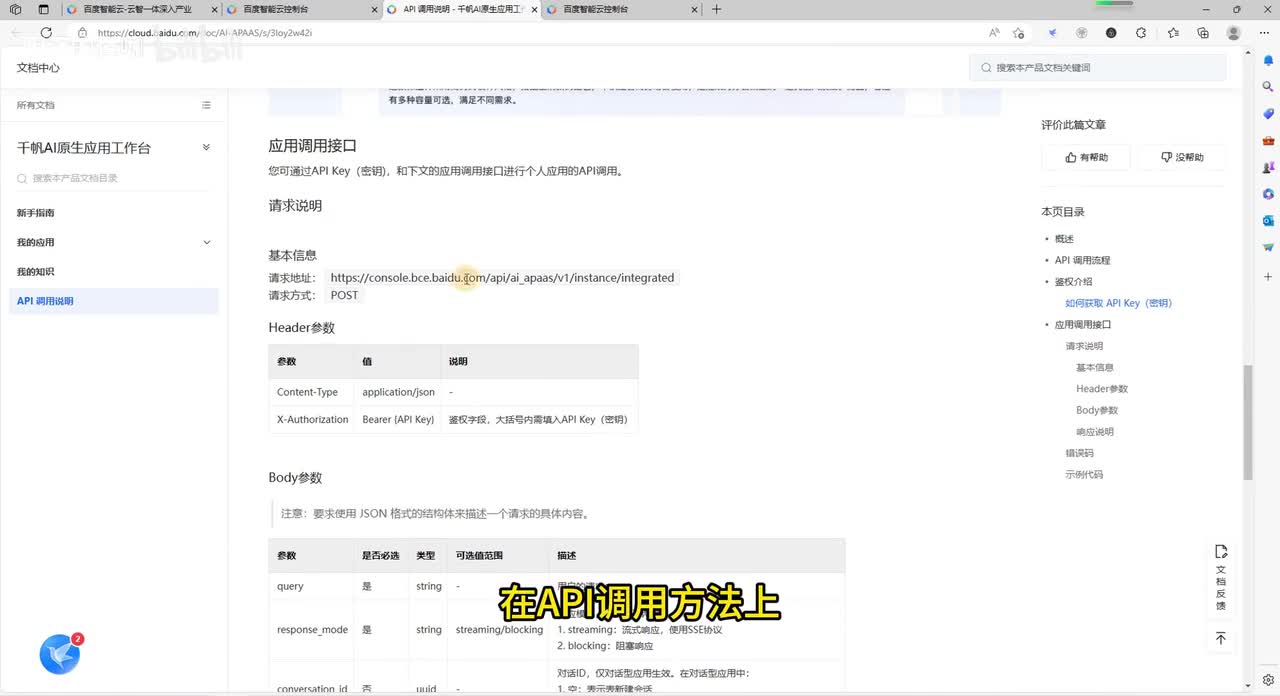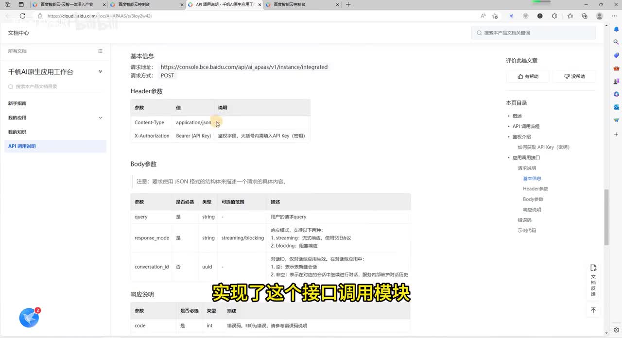 查阅了a p i调用文档,了解到我们首先需要创建应用的a p i k,这个在发布界面中即可创建。在a p i调用方法上,文档中可以找到a p i的调用地址。文档也给出了a p i调用的报文格式以及返回的报文结构。