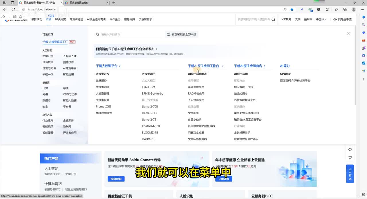 好了,咱们进入主题。带大家了解一下如何操作吧。首先我们登录百度智能云平台官网站,点在网页中找到产品。