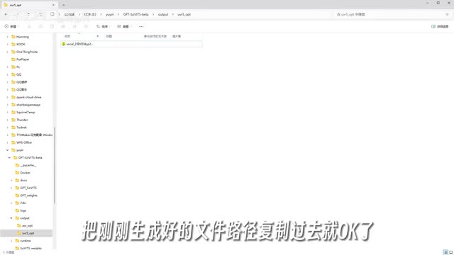 结果所有内容都操作完完毕之后,再点击c o fell来保存文件,就可以关闭这个页面了。第四步就要开始我们的音频训练了,选择一杠g p t杠service杠p t s页面,把这个名称随便填写就可以。把刚刚打标文件路径和切割好的音频文件路径分别粘贴到下面的两个输入框当中。然后直接点击下方的一键三连,就可以开始训练我们的声音模型了。