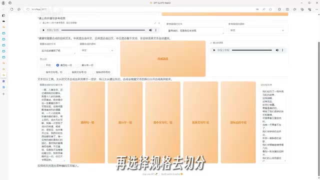 基本上每次生成出来的语言都会有细小的不同,大家可以多尝试几次。你们猜猜我是谁?你们猜猜我是谁?你们猜猜我是谁?如果想要生成一段文本的话,可以在下面的文本切分处填入整段文本,再选择规格去切分。我们经历了一场兵荒马乱的战争,没有硝烟,没有流血,却伤亡惨重。青春是美好的,带给了我们很多的快乐和激情。