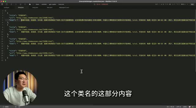 同样的话我们来到这个啊根目录啊,可以看到博物馆。点加省啊,大家看一下,这就是它采集下来的这个节省数据啊,也是这种格式化的数据。title u r l啊,然后这个u r楼里面对应的是哪些内容啊,都给我们显示出来了啊。那么这样一个官网的所有内容啊,我们几乎是在用一分钟不到的时间,把它整个网站上所有的内容都采集下来啊,并且以格式化内容输出。那么后续我们把它导入到g p t s里面去啊,就可以实现这样一个类似于官网的智能问答系统啊,或者说客服问答系统。整个操作的门槛就非常非常的低。同样的你用这个办法去采集一些学习文档啊、论文啊啊、网站内容啊都是o k的啊。