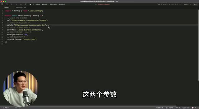 接下来呢,这个参数啊代表的是最大抓取数量啊。比如说你想在这个网站当中抓取多少页的页面啊,你去填写这个参数就可以了。最后这个参数呢,是我们输出这个加深格式的文件名啊,这个文件名呢你可以自己。命名啊方便自己去记忆就可以了。它输出的这个文件啊最后会在这个根目录里面啊,比如说像我们所看到的这个a幺三啊,以及这个output点jason啊,这就是它所代表的这几个数据啊,接下来我们来实际演示一下啊,我们先用这个大疆的来举例啊。这些参数我都不变啊,但是呢因为它里面是没有这个类名的啊,我们把这一行代码给它注释掉啊,最大采集十个啊,然后这个输出的jason类名呢,我把它改成tech的啊o k啊。然后打开这个终端指令,我们输入n p m s t a r t啊,然后点击执行就可以了啊。