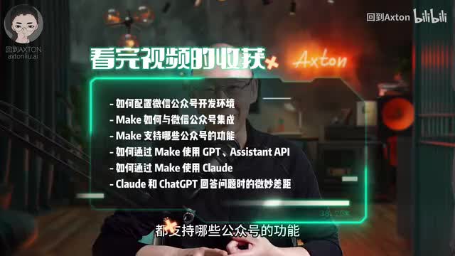 然后根据微信信息的类型的不同,给出不同的微信回复,甚至如何把cloud也集成到mac工作流里面。那看完本期视频呢你将会了解到,第一,如何配置微信的公众号的开发环境。第二,mac如何与微信公众号集成,都支持哪些公众号的功能。第三。如何通过make使用g p t,assistant a p i以及cloud。第四,cloud和chat g p t回答问题时候的一些微妙的差距。如果你对这些内容感兴趣呢,请帮我点个赞,收藏起来也方便你回看。咱们开始。